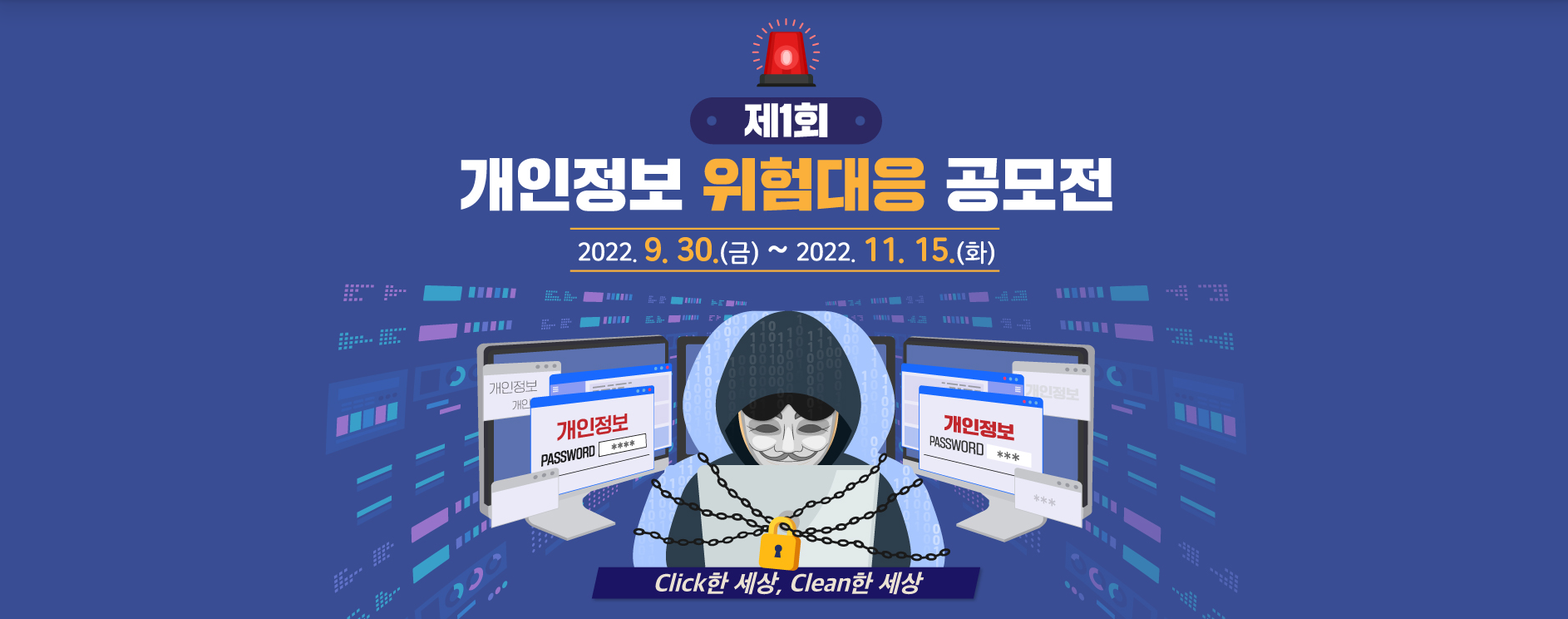 개인정보보호위원회와 한국인터넷진흥원은 다크웹(지하웹) 등에서 발생하고 있는 개인정보 유노출과 불법유통에 대한 효과적인 대응 방안을 모색하기 위해 다음과 같이 제1회 「개인정보 위험 대응 공모전」을 개최하오니 많은 관심과 참여 바랍니다.