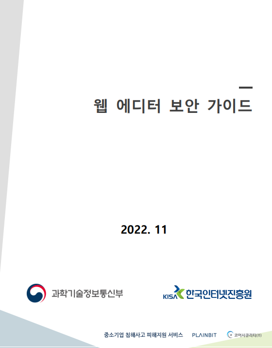 #KISA #웹 에디터 보안가이드 #보안가이드 #FCKEDITOR #CKEDITOR #SMARTEDITOR2.0 #G-EDITOR #RAINEDITOR #DAUMEDITOR #TINYMCE EDITOR #EZEDITOR