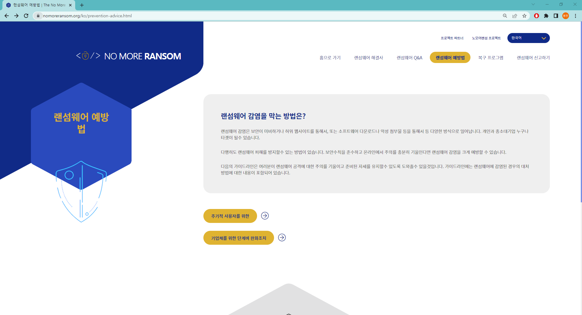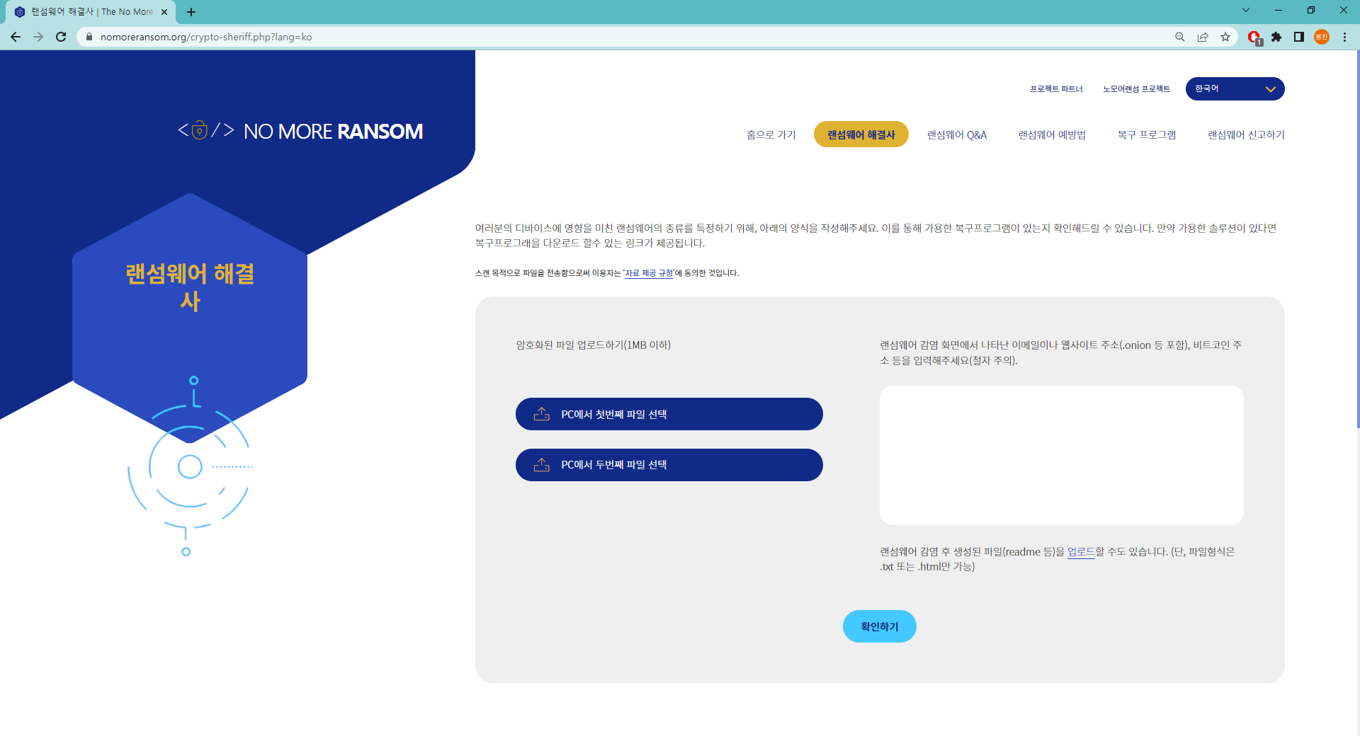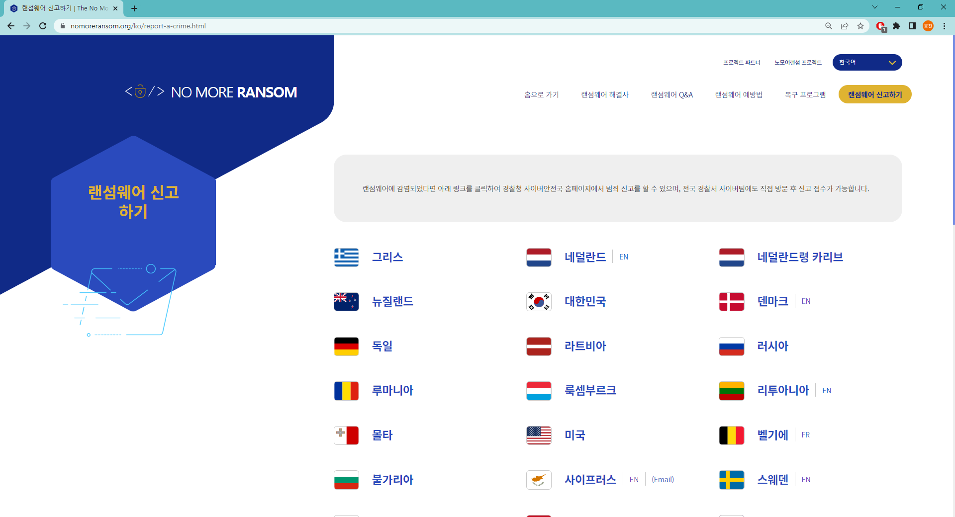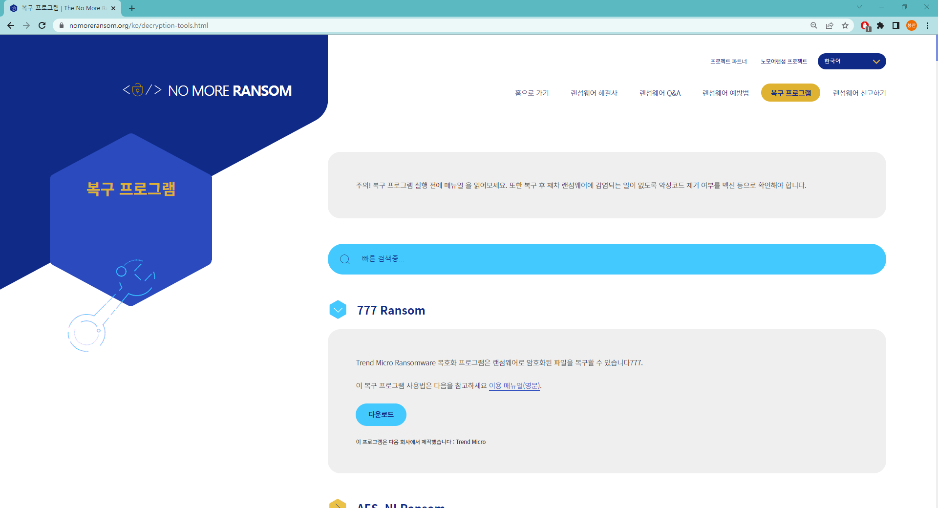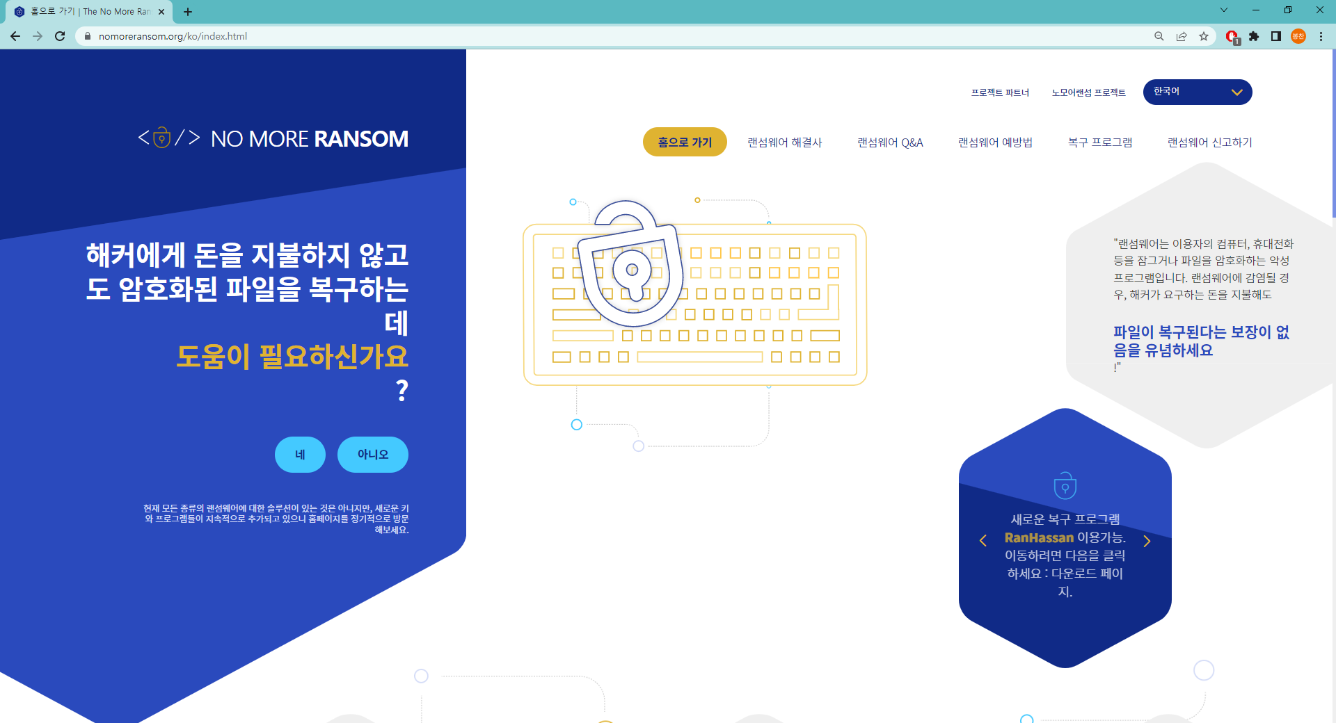 [NoMoreRANSOM] 랜섬웨어 복구 프로그램 및 지원 사이트