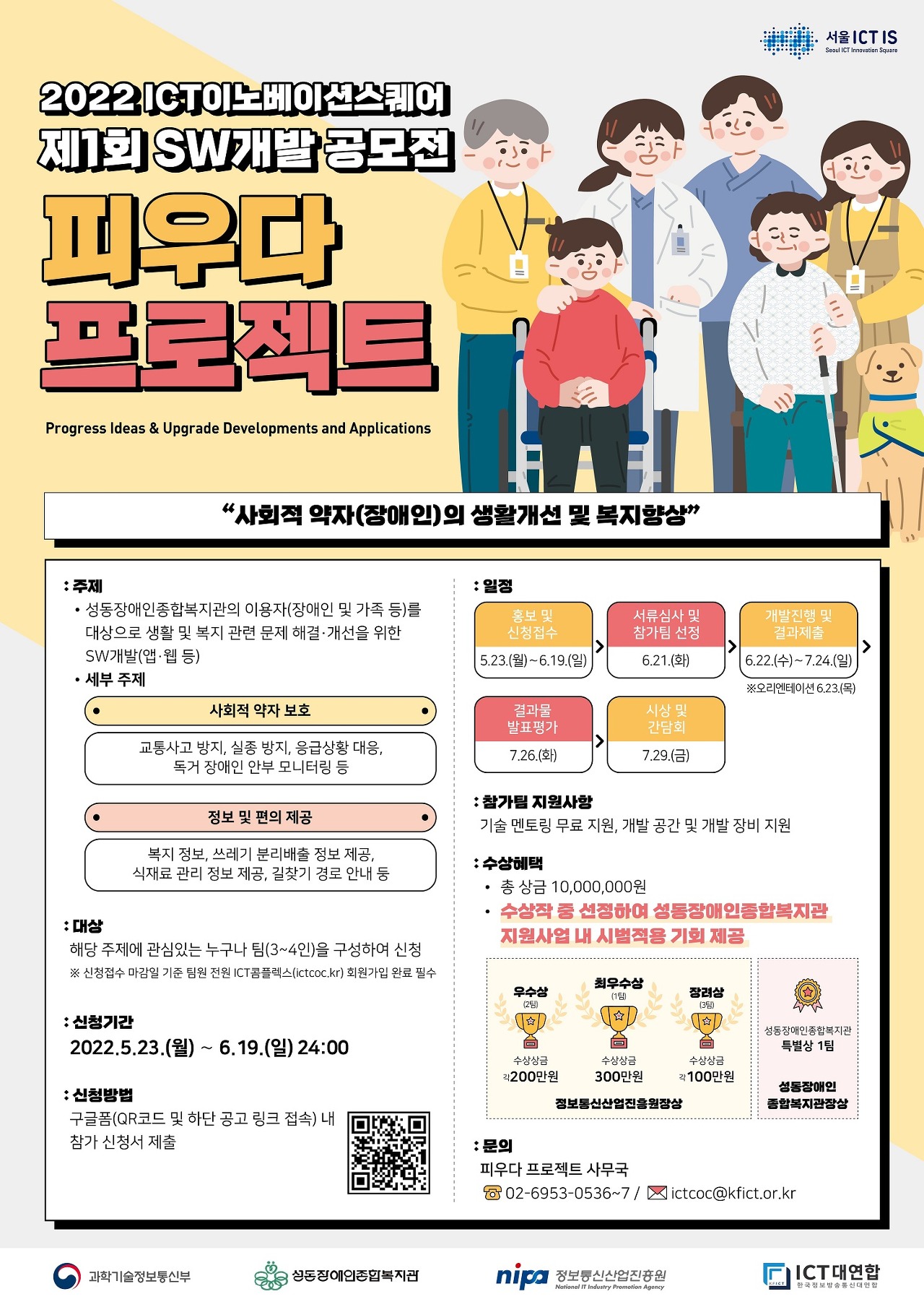 [공모전][ICT이노베이션스퀘어] 2022 SW개발 공모전-피우다 프로젝트(장애인 생활개선 및 복지향상) 참가자 모집