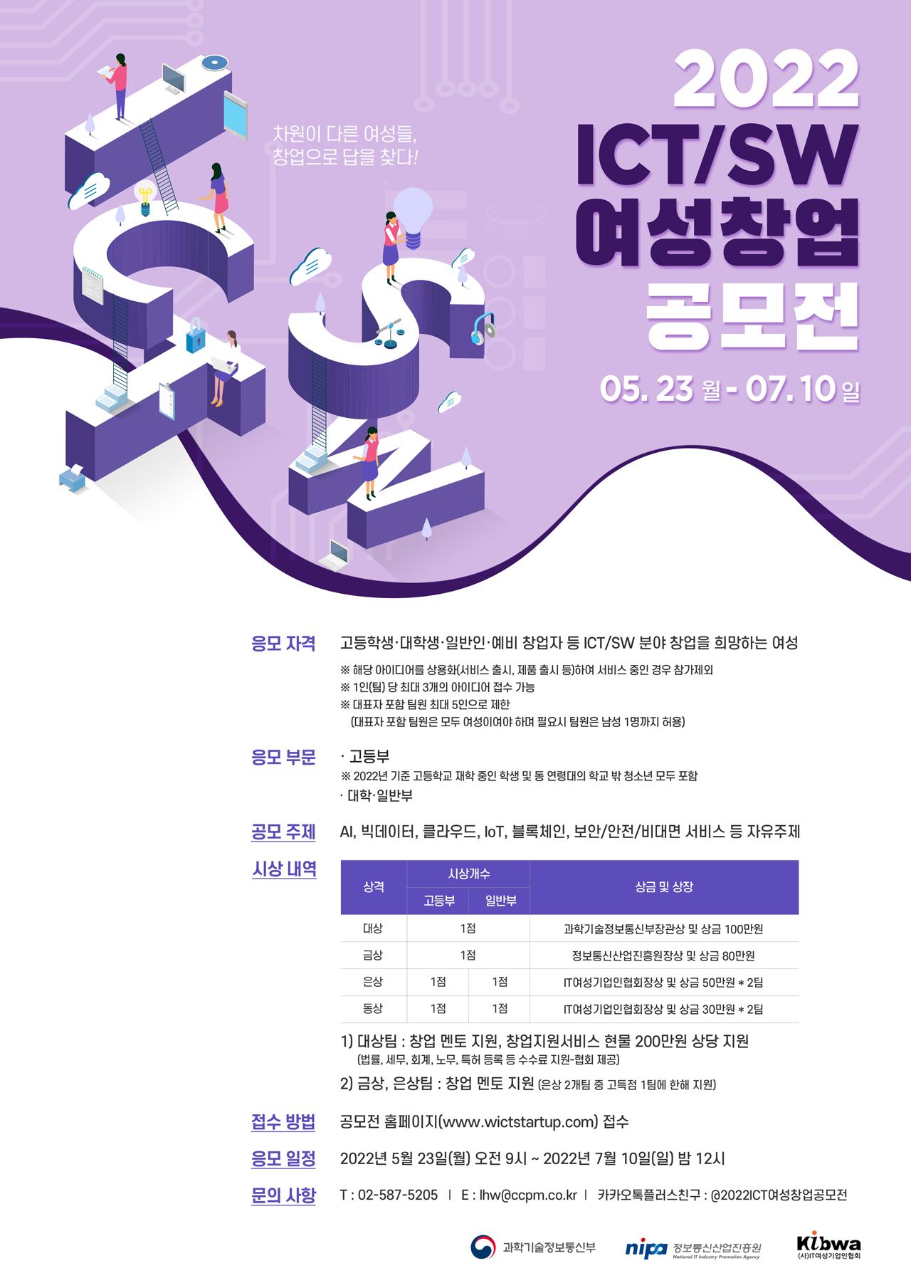 #공모전 #2022년 ICT/SW 여성창업 공모전 #여성창업 #ICT/SW #과학기술정보통신부 #정보통신산업진흥원 #KIBWA